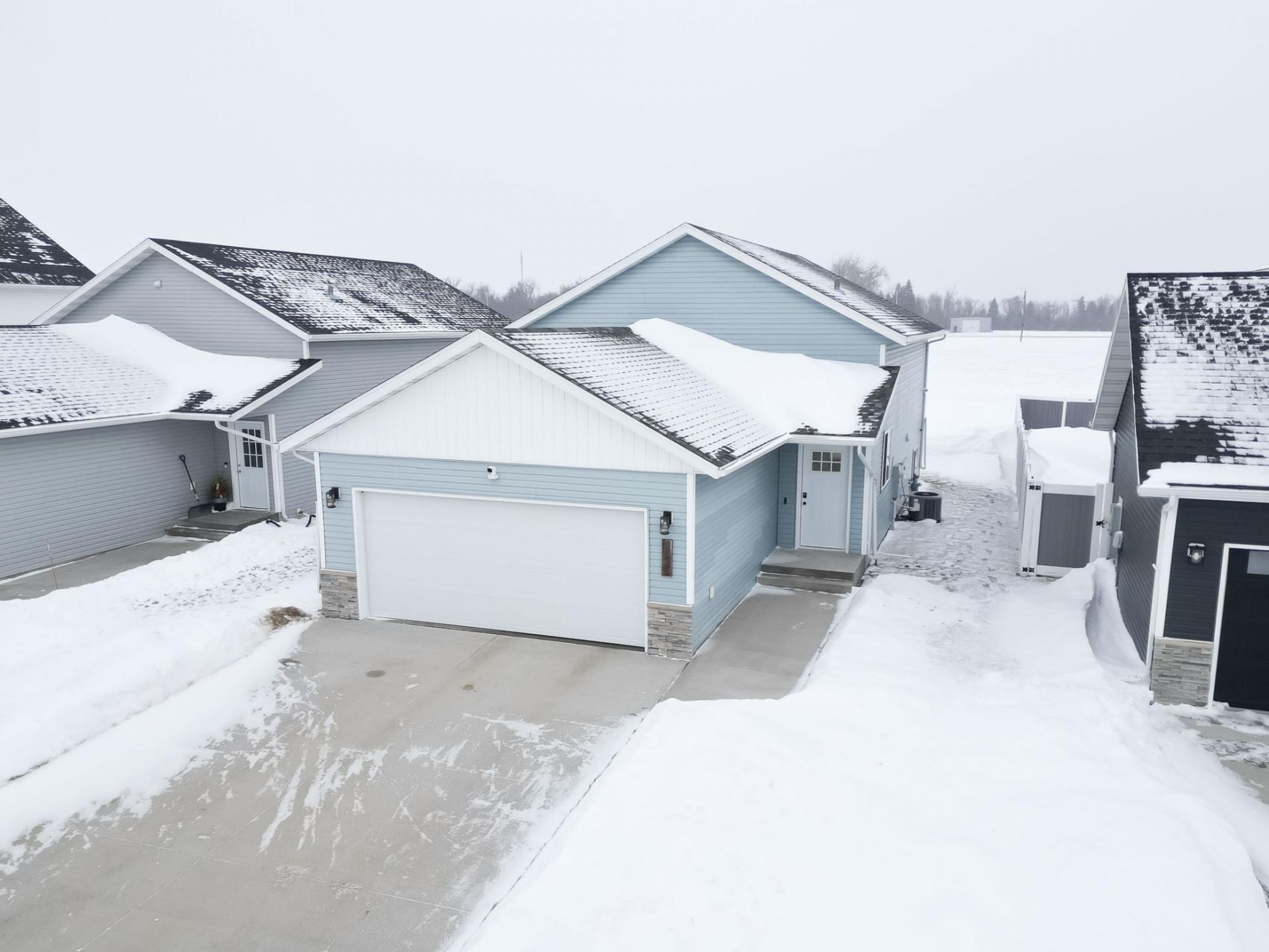 Here is your opportunity to own this meticulously maintained 2021-built bi-level home-truly better than new! This beautiful home offers 1,852 sq. ft. of living space with 3 bedrooms, 2 bathrooms, a 2-stall garage in a desirable Horace neighborhood.LOWER SPECIALS which mean lower taxes compared to brand new homes! You will love the privacy as there is NO BACKYARD NEIGHBORS! Step into a bright, welcoming foyer. Upstairs features an OPEN FLOOR PLAN with a large kitchen that includes a PANTRY, stylish STONE ISLAND, stainless steel appliances, a dining area, and a spacious living room-perfect for everyday living and entertaining. The private PRIMARY SUITE offers a large walk-in closet and a bathroom with DUAL SINK vanity.The lower level includes a LAUNDRY ROOM, a generous family room, 2 additional bedrooms, a spacious 2nd bathroom, and excellent storage. Large windows throughout the home bring in beautiful natural light. Both bathrooms and the kitchen feature stone countertops.Enjoy outdoor living with a large deck, SPRINKLER SYSTEM, and peaceful privacy with NO BACKYARD NEIGHBORS. Additional features include central air, gas-forced heat, a poured foundation, a full security camera system, and fully insulated and sheet-rocked garage.Make this your home today!